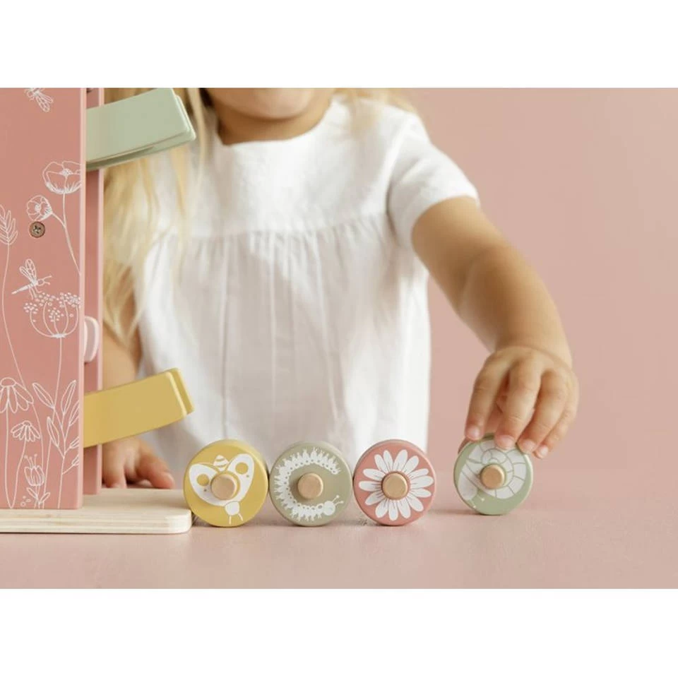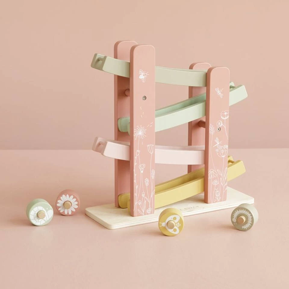 Je kindje zal heel veel pret hebben met deze superschattige rollerbaan van Little Dutch. Deze houten baan is uitgevoerd in een Wild Flowers thema.