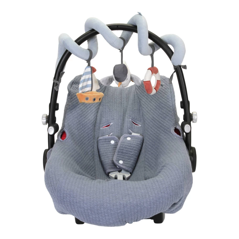 Met de knuffeltjes en figuren aan deze Little Dutch Sailor’s Bay activiteitenspiraal kan je kindje heerlijk spelen. Elke dag wordt een nieuw avontuur in de baai met deze uitnodigende activiteitenspiraal. Dit uitdagende speelgoed is gemaakt van katoen en corduroy en heeft verschillende speeltjes waaronder een zeemeeuw, een zeilboot en een reddingsboei met verschillende leuke labels en een spiegeltje voor zelfontdekking. De spiraal stimuleert de eerste hand-oogcoördinatie van je kleintje en zorgt voor urenlang vermaak. Je kunt hem gemakkelijk bevestigen aan box, autostoeltje of kinderwagen.