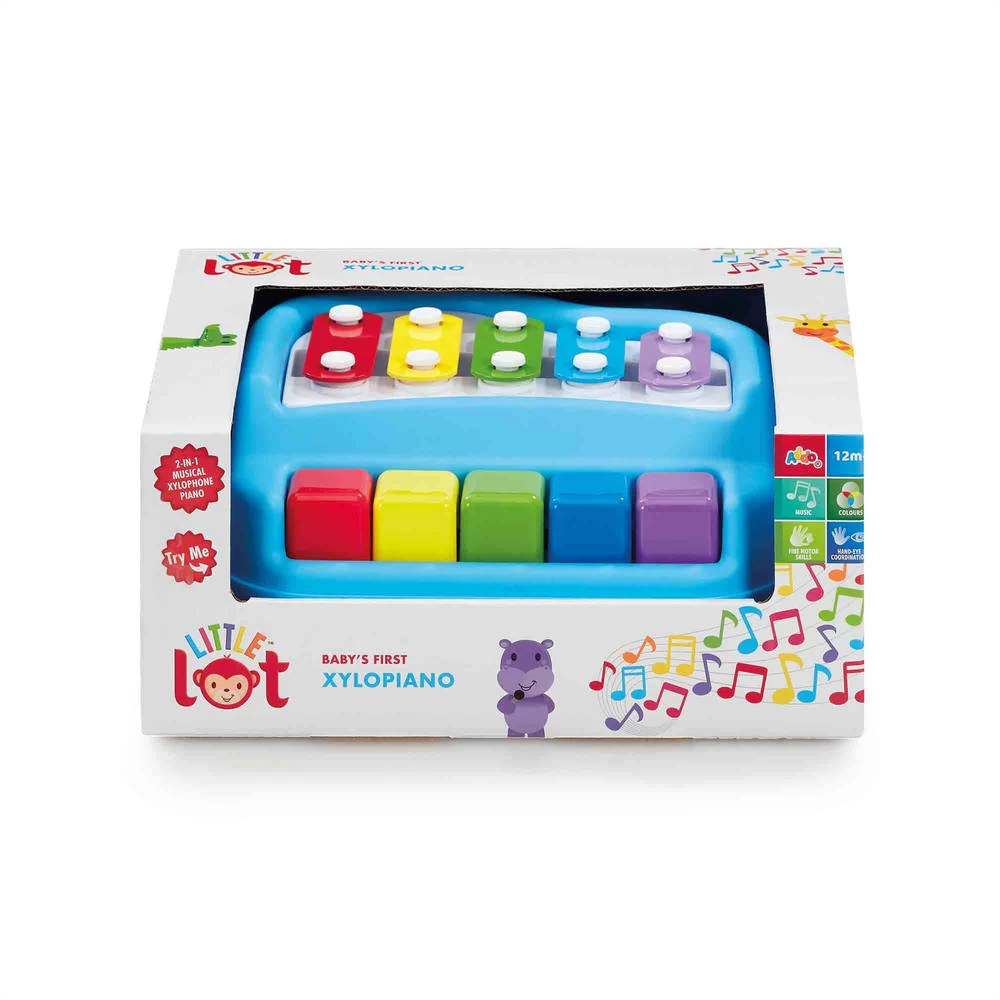 Prikkel met deze kleurrijke xylopiano de zintuigen van je kleintje. Deze fantastische xylofoon en piano twee-in-één combinatie bevat vijf veelkleurige noten die zowel in xylofoon- als in pianomodus kunnen worden gespeeld. Druk op de knoppen op de piano of gebruik de gemakkelijk vast te houden klopstokken. Hoeveel melodieën kun je maken? Geniet urenlang van het maken van deuntjes en het luisteren naar de geluiden.