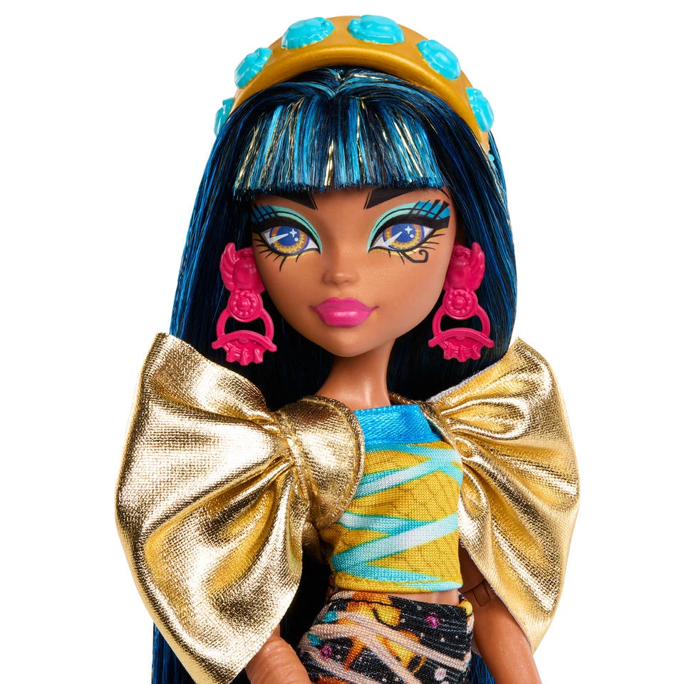 - Cleo De Nile is een echte koningin met een glinsterende pony en een mummie-chique outfit die je kunt mixen en matchen, helemaal in haar eigen vorstelijke stijl.