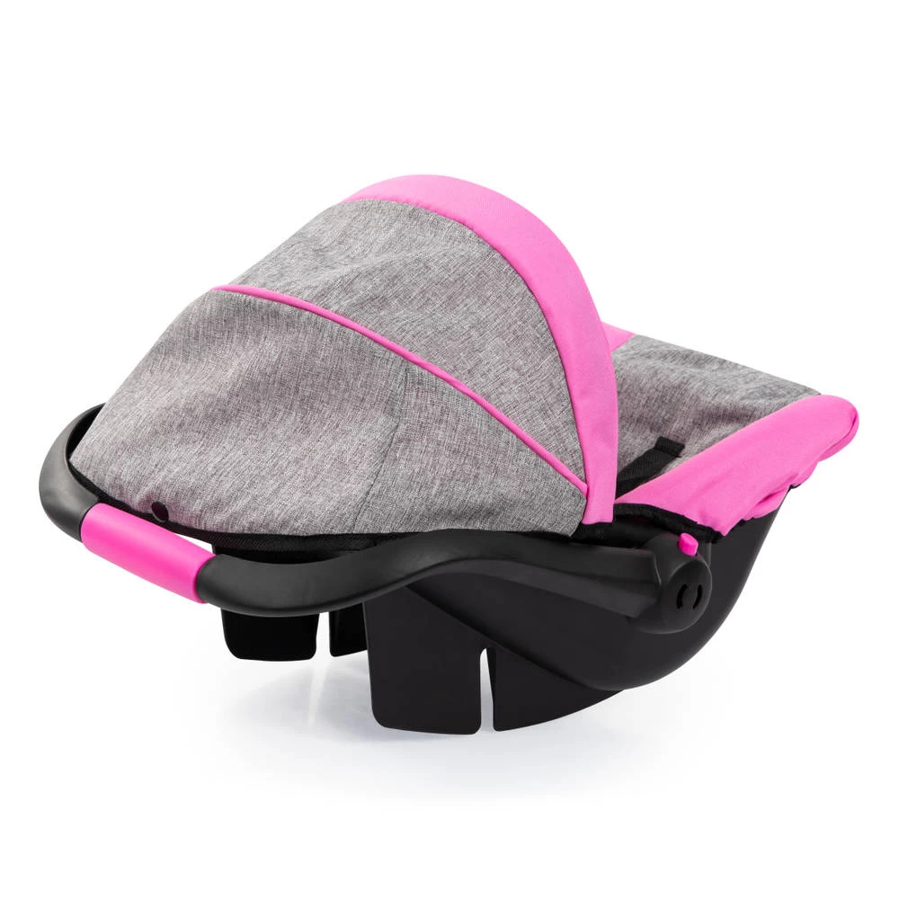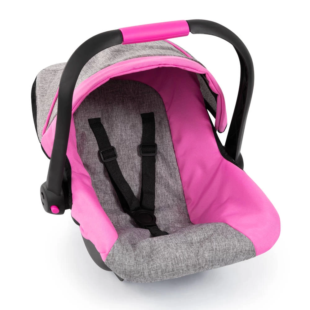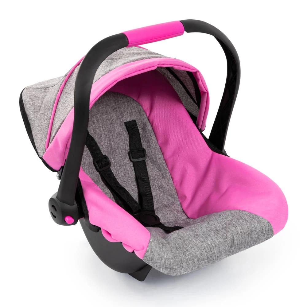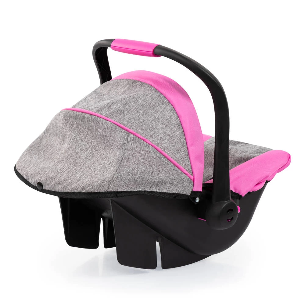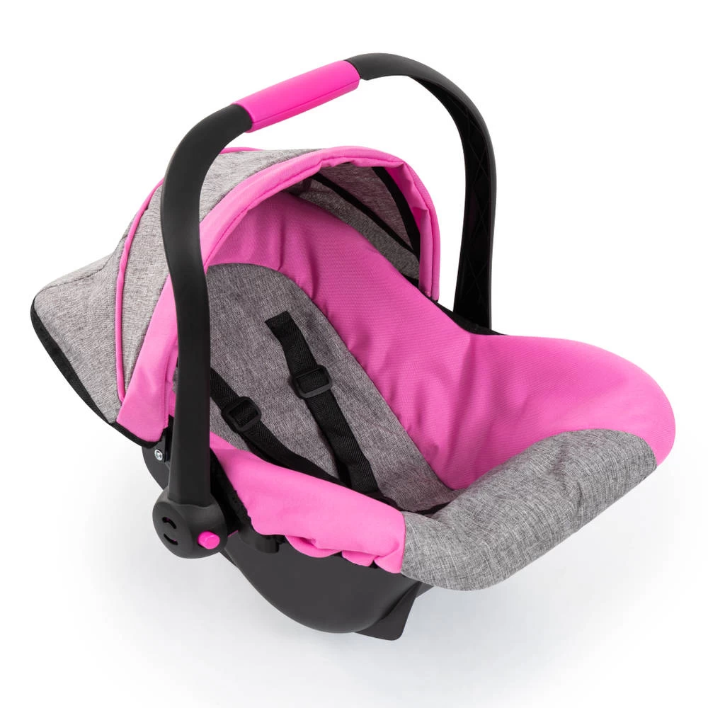 In deze deluxe autostoel met zonnescherm is je pop altijd beschermd als je op pad gaat. Dit moderne poppenautostoeltje heeft een zeer modieuze kleur en is geschikt voor poppen tot 46 cm. Met de prachtige stof en geïntegreerde zonnescherm zit de pop of knuffel comfortabel en is hij beschermd tegen zon en wind in het gezicht. Dankzij de veiligheidsgordel is de pop of de knuffel ook beveiligd tegen vallen en kan hij of zij lekker wegdommelen tijdens het wandelen. Het ergonomische handvat is comfortabel om te dragen, hierdoor is het gemakkelijk om de pop of de pluche overal mee naartoe te nemen. Het is ook mogelijk om het poppenautostoeltje op de Vario-poppenwagen te monteren.