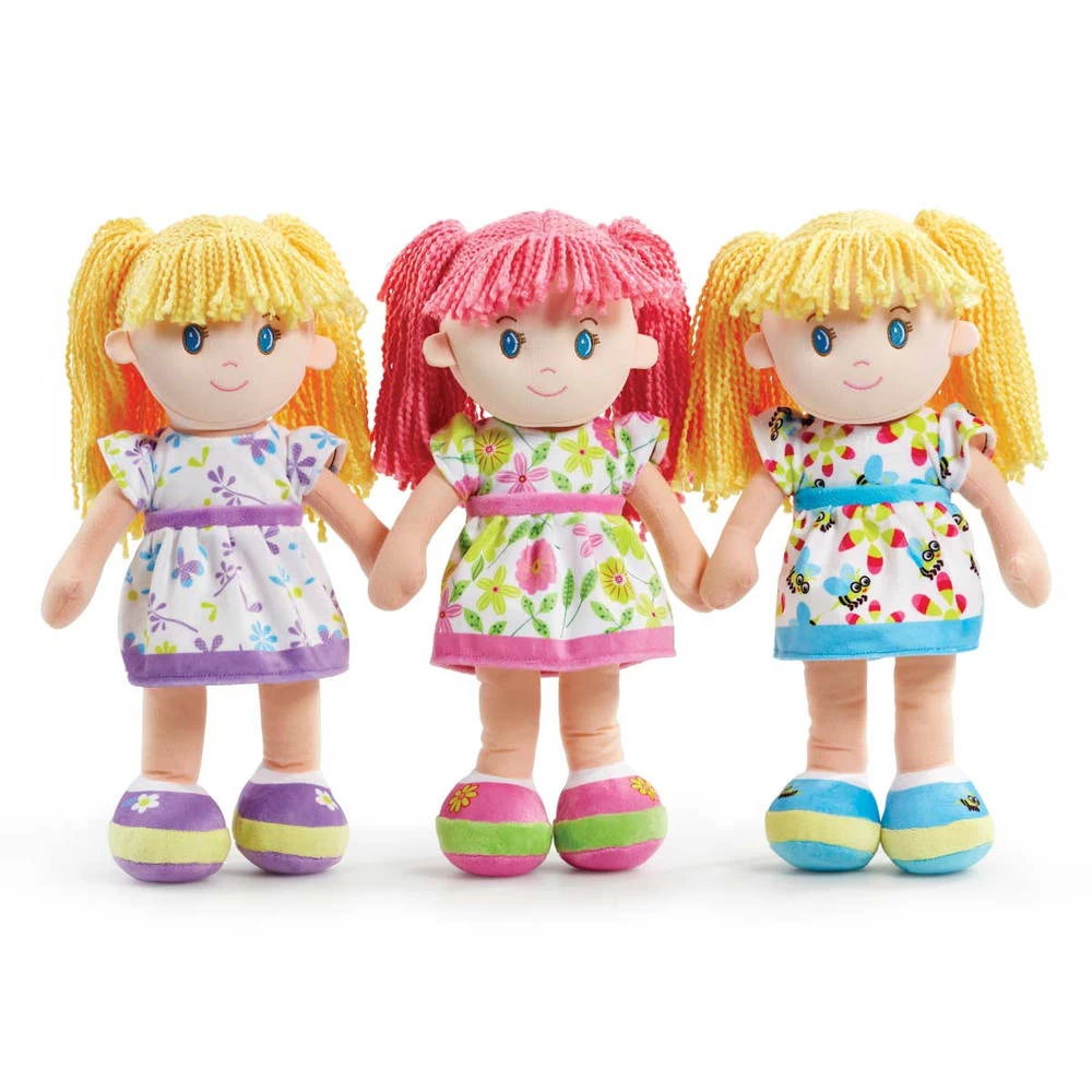 - Knuffel en speel met deze mooie, pluchen meisjespop.