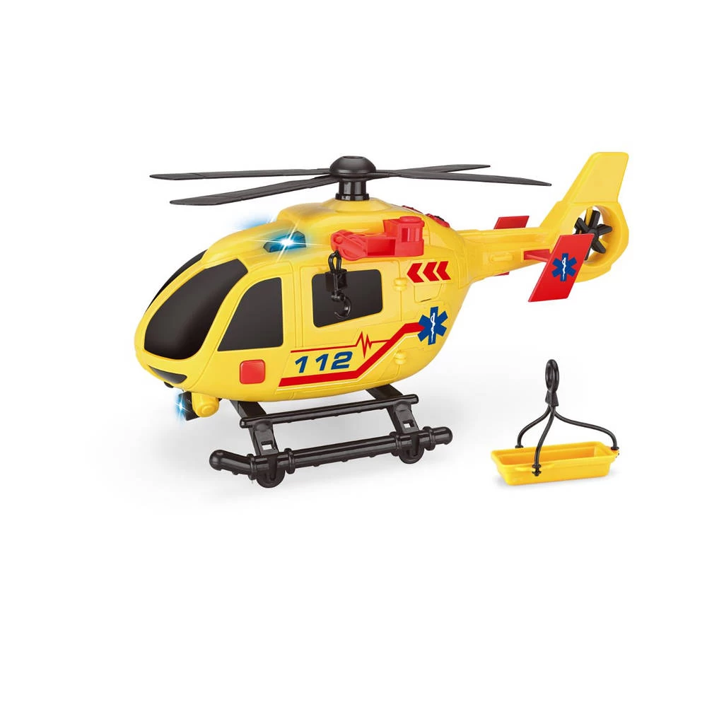 Help mensen in nood met deze stoere reddingshelikopter. De heli is geel van kleur en het alarmnummer staat op de zijkant. Ook met een losse brancard die je aan de onderkant kunt bevestigen. De helikopter beschikt bovendien over licht en geluid voor nóg meer speelplezier.