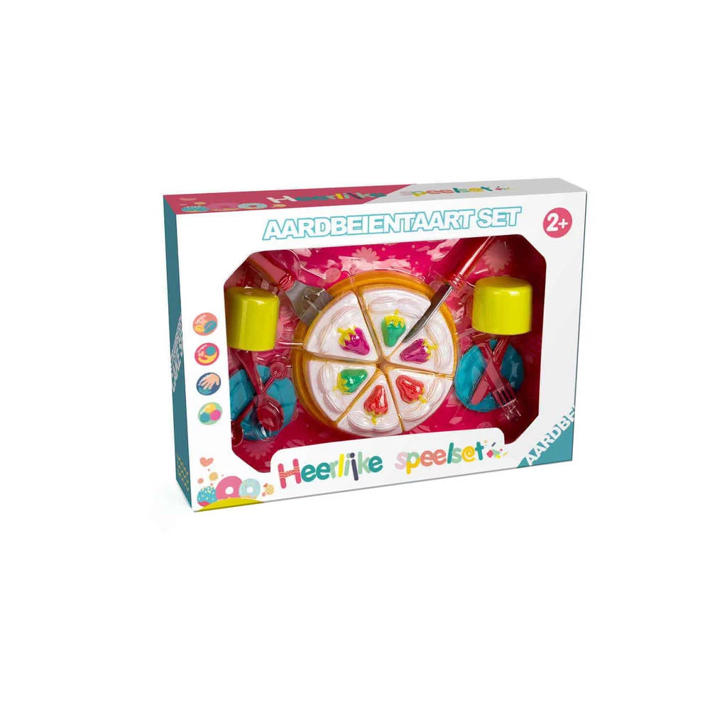 - Het feestje kan beginnen met deze speelgoedaardbeientaartset.