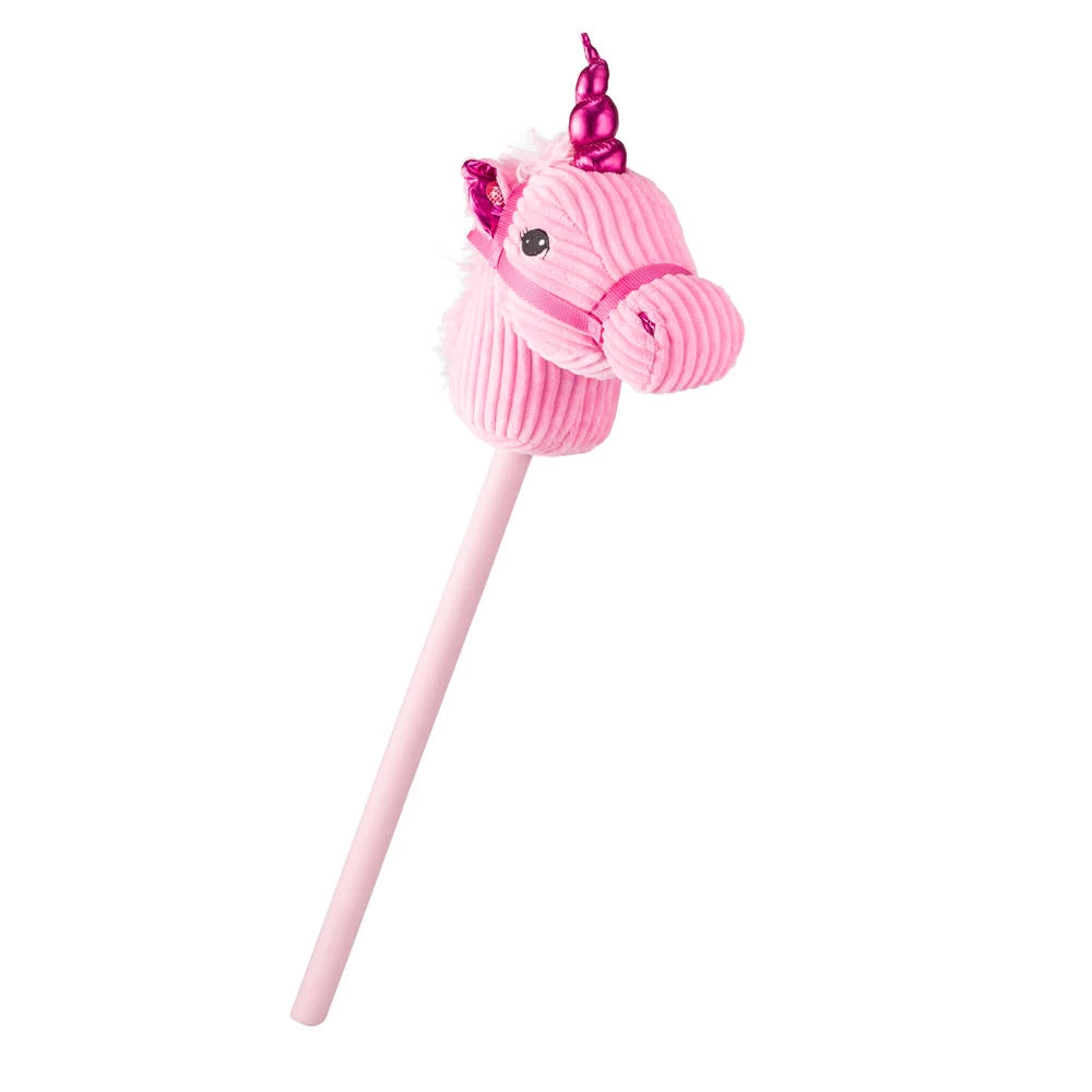 Huppel fijn in het rond met dit leuke, roze stokpaard met geluid!
