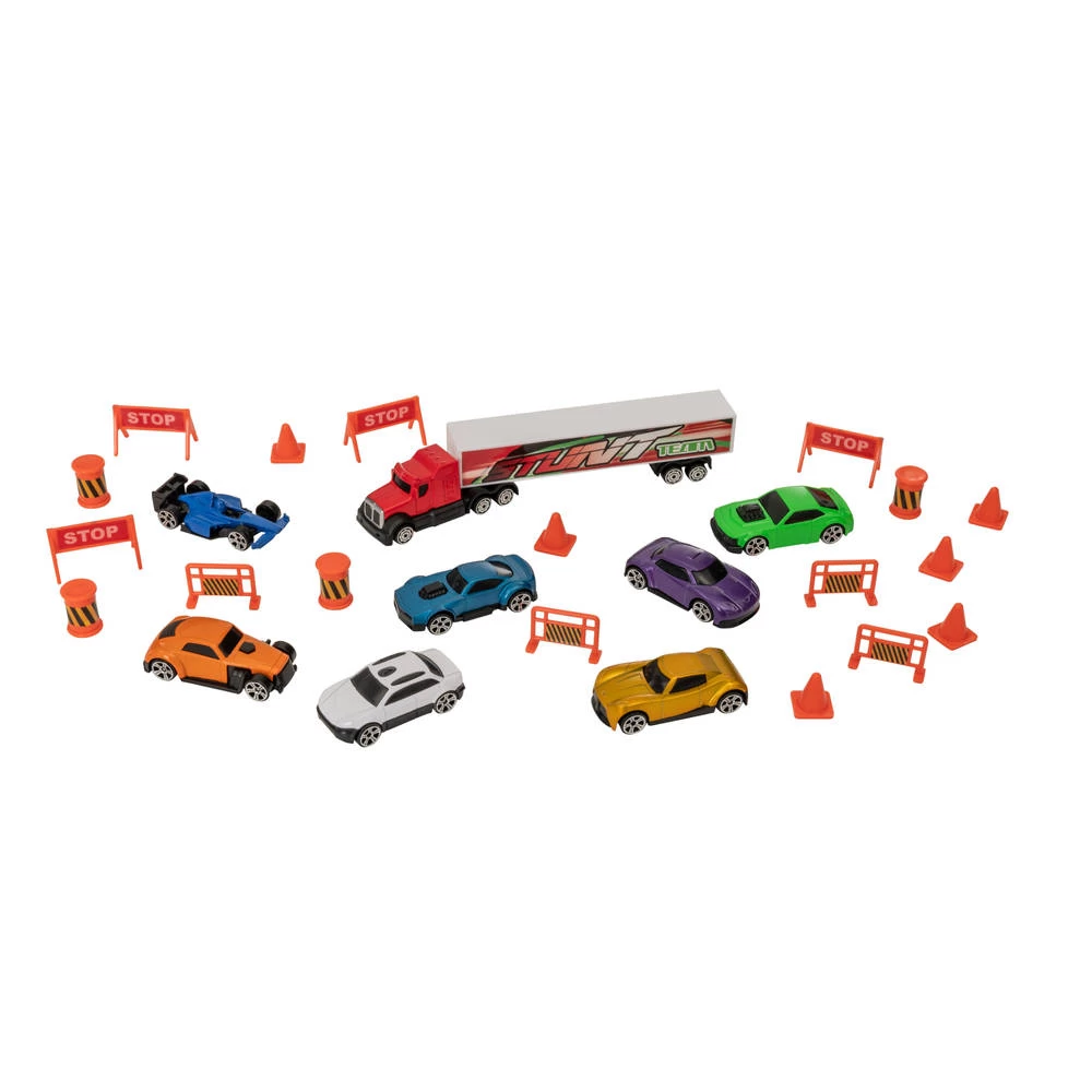 Vervoer je wagens gemakkelijk met deze gave Teamsterz transporter. Deze wordt geleverd met acht kleurrijke auto’s.