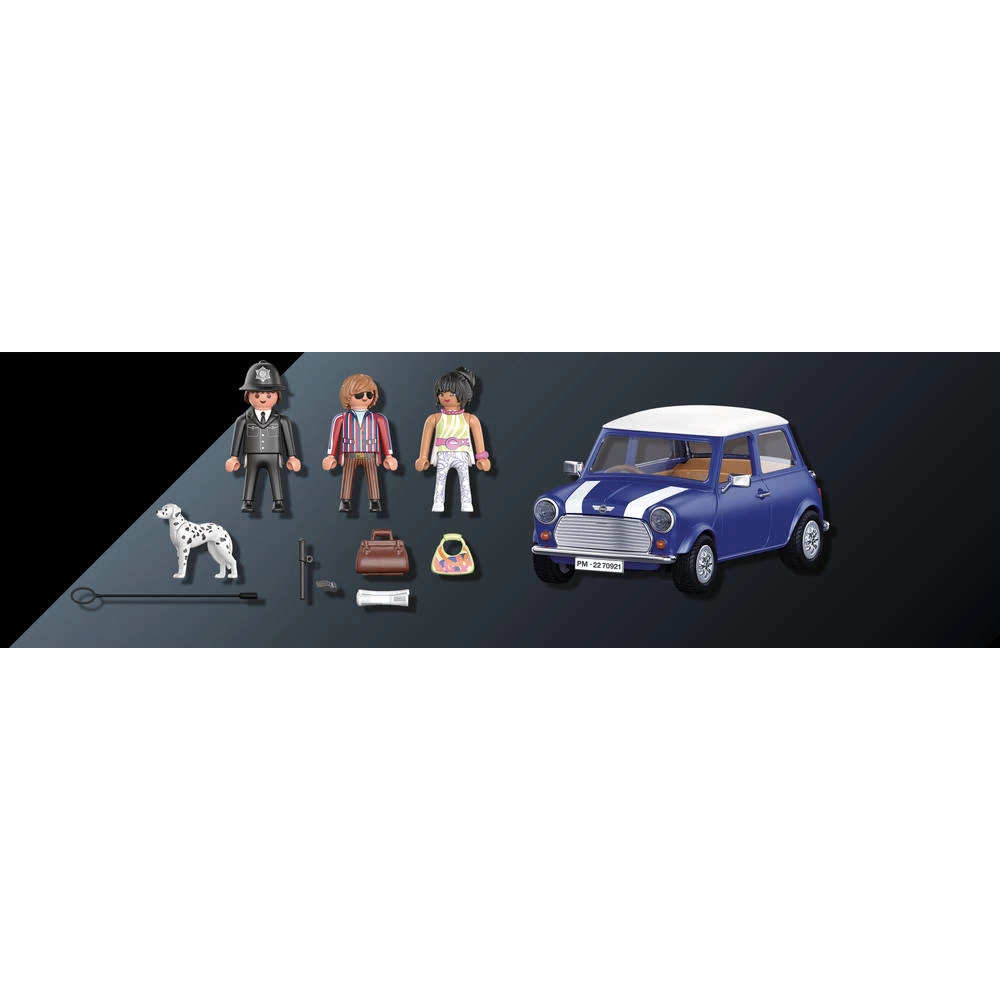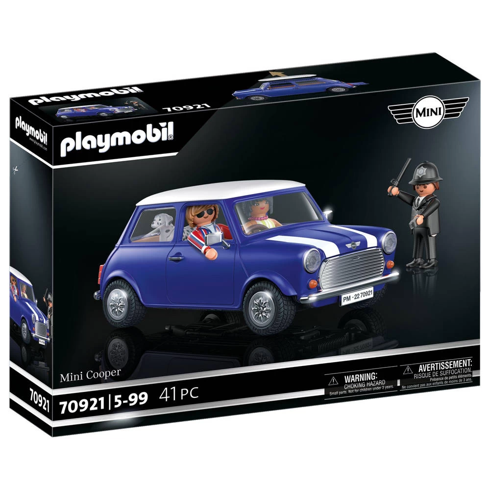 De Mini Cooper biedt veel auto in een kleine ruimte. Voor ontwerper Alec Issigonis was “creatief gebruik van de ruimte” en “focus op het essentiële” zo belangrijk dat er geen verwarming of radio in de auto was verwerkt en dat er horizontale schuiframen zijn gebruikt in plaats van hedendaagse ramen. Net als het origineel doet dit Playmobil model het hart van elke verzamelaar sneller kloppen. De achterklep kan worden geopend en vier figuren kunnen via het afneembare dak in het ruimtewonder stappen. De