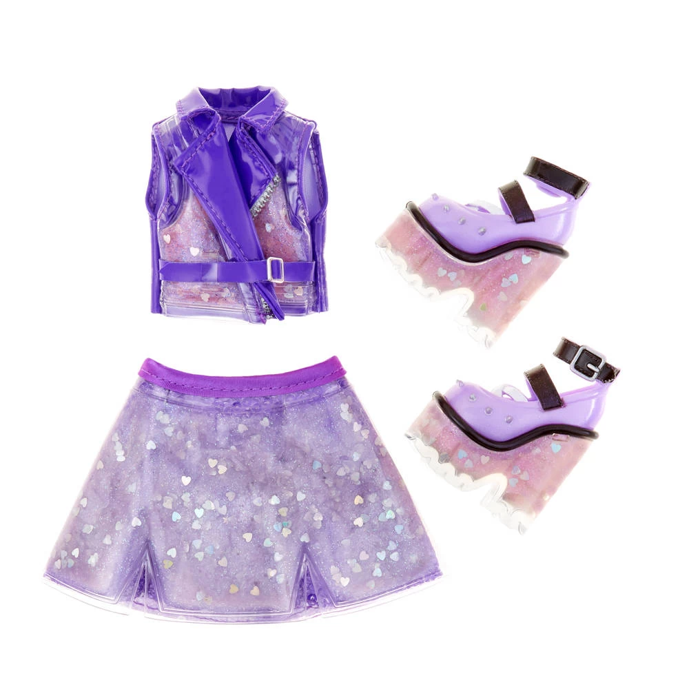 Geef deze Rainbow High modepop Amethyst Rae een compleet nieuwe outfit door haar mode-accessoires te stylen met je eigen gemaakte slijm!